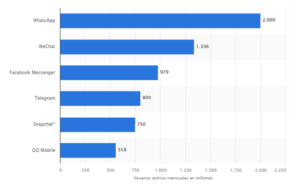 En enero de 2024, dos mil millones de usuarios accedían al chat de WhatsApp mensualmente, según Statista1